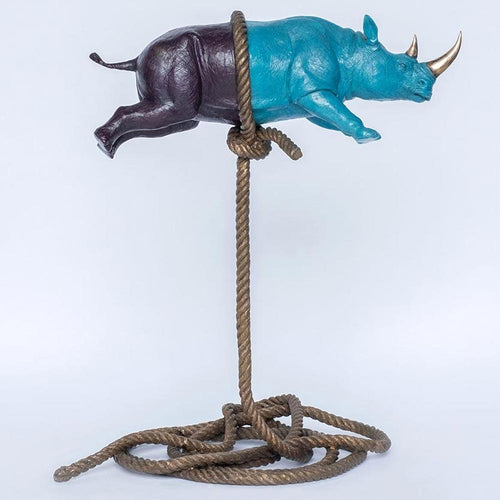 Gillie and Marc, Flying Psychedelic Rhino on short Rope, Bronze sculpture # 1/10